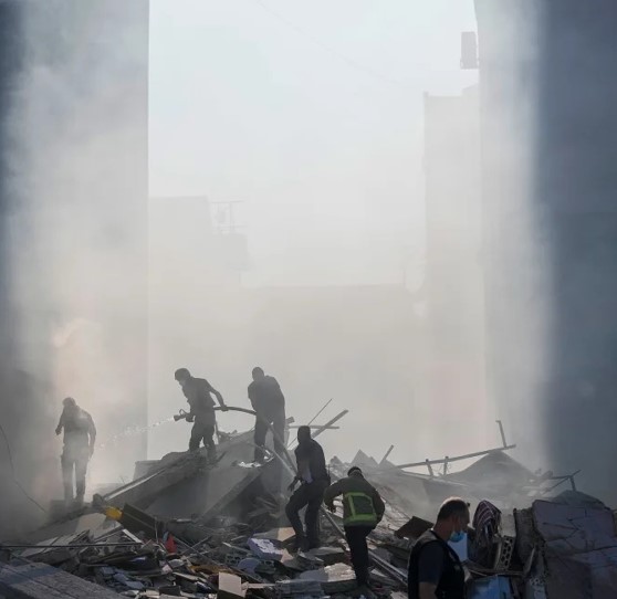 Fotoreporteri Hassan Ammar kishte veshur xhaketën dhe helmetën e tij dhe nxitoi në vendngjarje – duke marrë pozicionin e tij në një distancë të sigurt dhe përdori aparatin me lente të gjatë. Më herët ushtria izraelite lëshoi një paralajmërim evakuimi duke shpjeguar në hartë ndërtesën që synonte sulmi ajror.