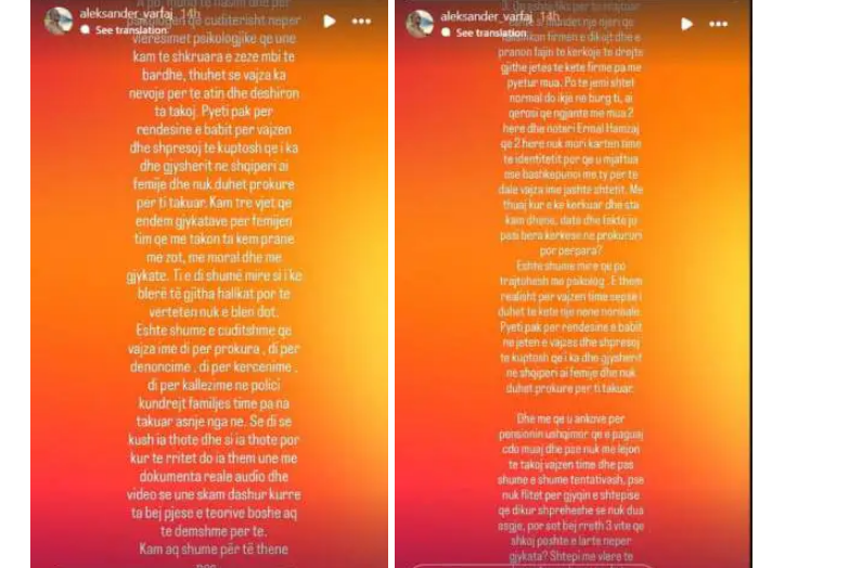 Aleksandër Varfaj dhe Rudina Dembacaj kanë qenë në konflikt për vite me radhë pas divorcit të tyre dhe janë përballur në dyert e gjykatës për disa çështje të lidhura me ndarjen. Megjithatë, nuk dihet ende nëse ky sulm ka lidhje me përplasjet e mëparshme të çiftit pas divorcit.