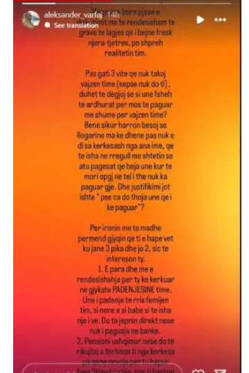 Rikujtojmë reagimin e Aleksandrit pas një deklarate të bërë nga ish-bashkëshortja e tij;