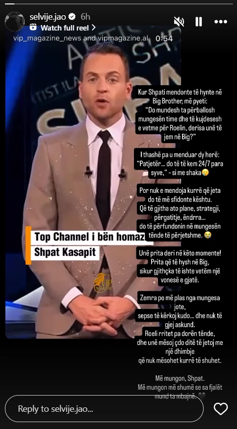 “Kur Shpati mendonte të hynte në Big Brother, më pyeti: ‘Do mundesh ta përballosh mungesën time dhe të kujdesesh e vetme për Roelin, derisa unë të jem në Big?’”.