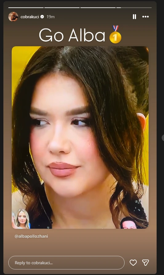 Ndërkohë, nga jashtë shtëpisë, Edi duket se nuk ka qëndruar indiferent ndaj këtyre zhvillimeve. Ai ka thumbuar Dolcen përmes një reagimi, duke e quajtur atë “mendjelehtë”. Po ashtu, Edi ka zgjedhur të shprehë hapur mbështetjen e tij për Albën, duke publikuar një postim në rrjetet sociale me mbishkrimin: “Go Alba”.