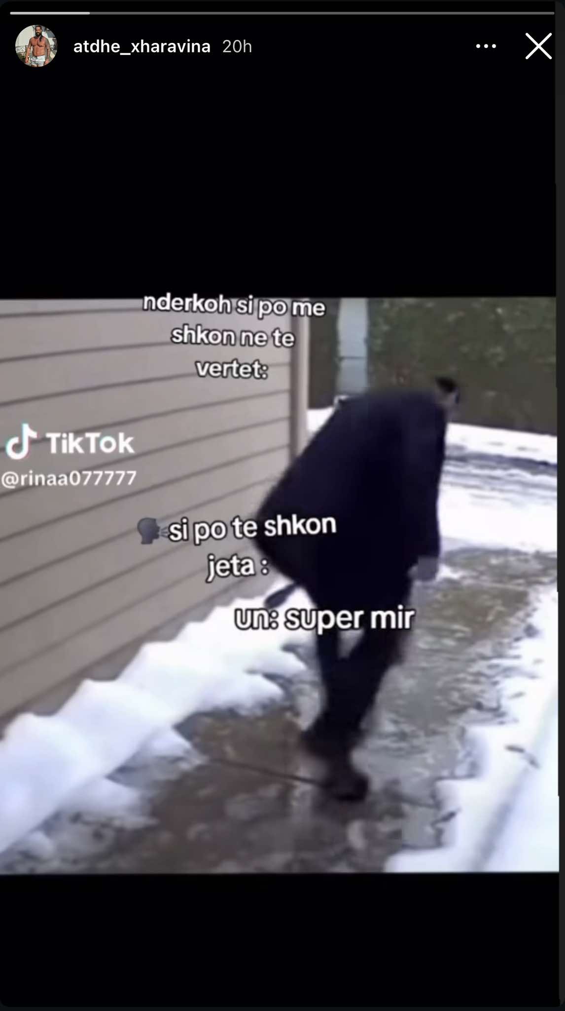 Vetë Atdheu ka qenë aktiv në rrjete sociale. Ai, ka postuar nje video ku shihet një person duke rrëshqitur në akull, shkruan “Kosovarja”.