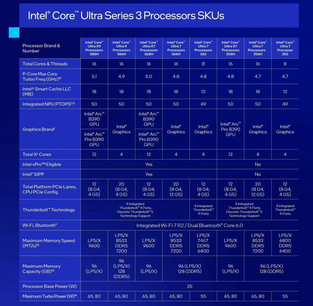 Mes procesorëve të rinj janë modelet Core Ultra 7 dhe 9 si dhe Core X7 dhe X9 të cilët përmbajnë 12 bërthama grafike Xe.