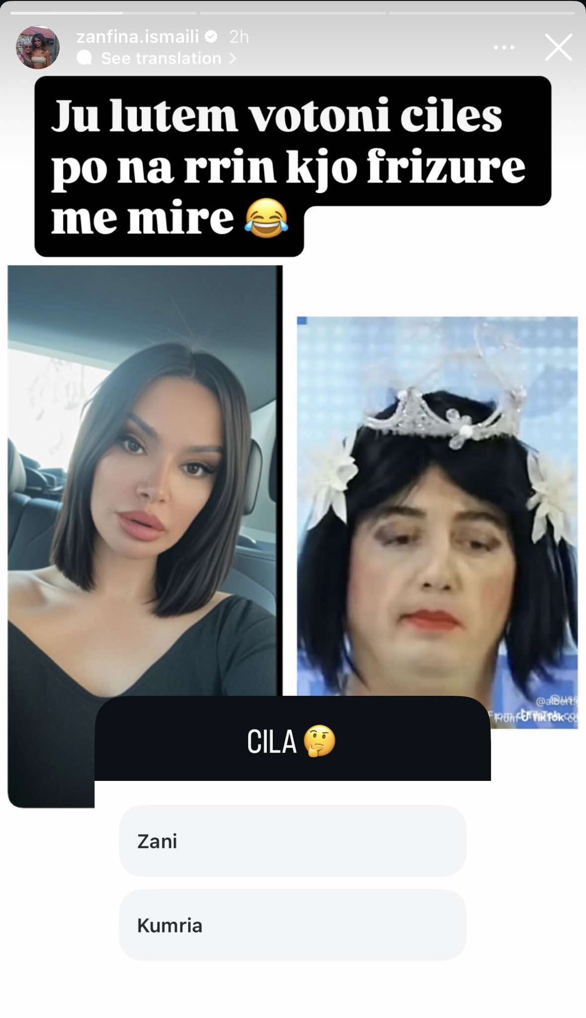 Zanfina Ismaili ka publikuar një fotografi të saj me flokë të shkurtër, të cilën e ka vendosur përkrah një imazhi të Tetës Gjyli, personazhit të njohur që interpretohet nga Osman Azemi, shkruan “Kosovarja”.