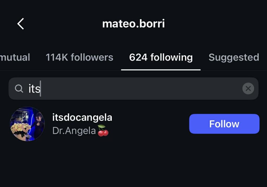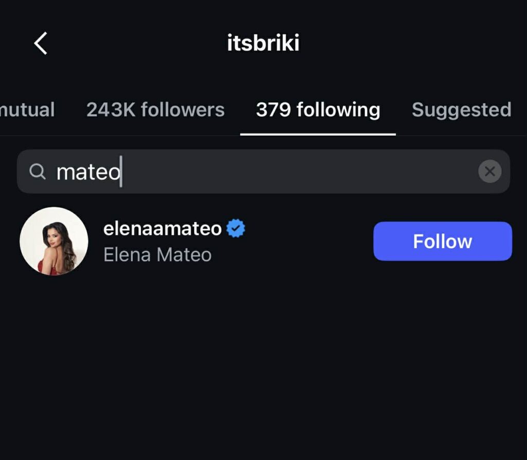 Në listën e personave që ndjek llogaria e Brikenës mungon emri i Mateos, dhe e njëjta situatë reciproke vërehet edhe në profilin e Mateos.