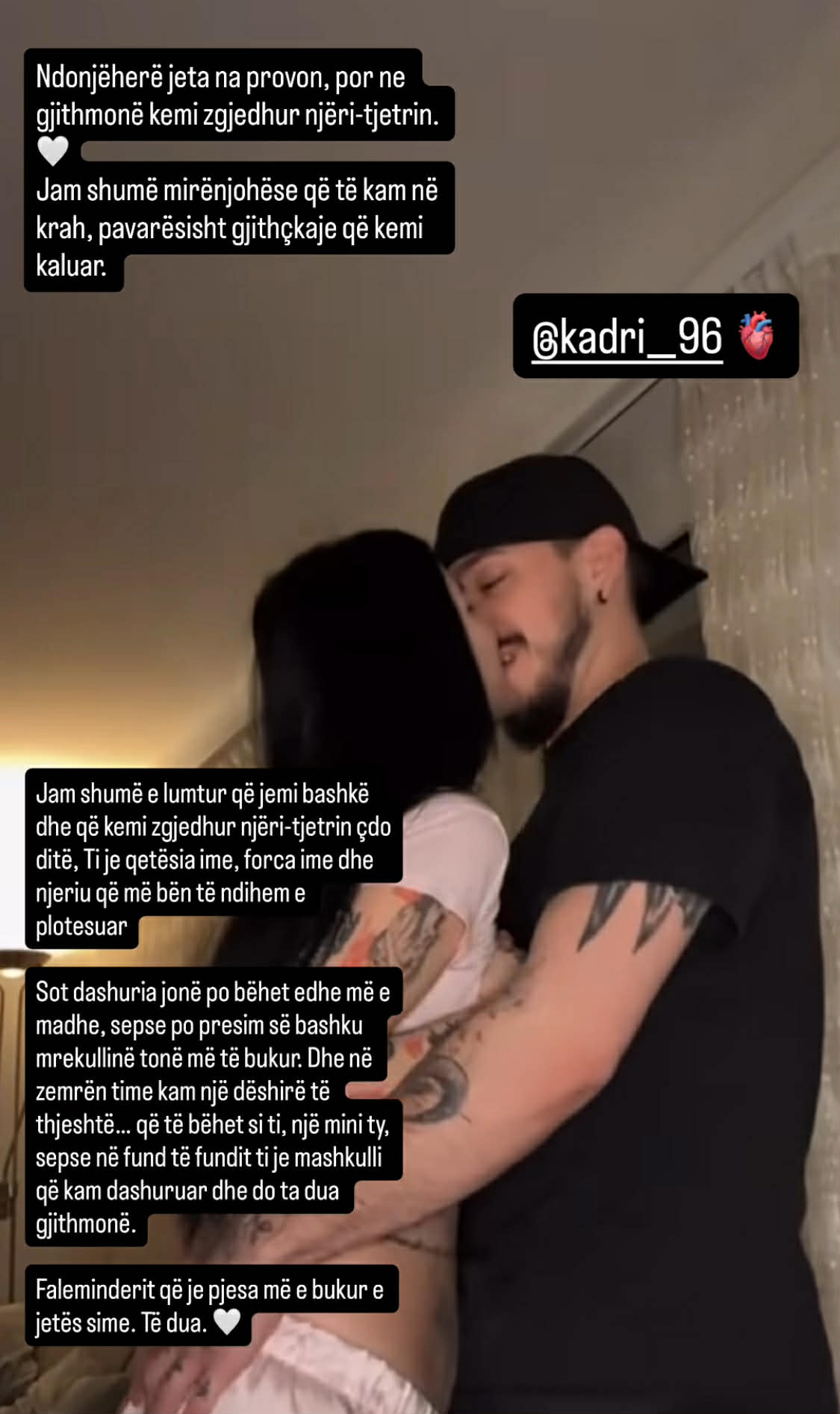 Lajmin e bukur ajo e ndau përmes një postimi emocional, ku shprehet se ndihet shumë e lumtur dhe mirënjohëse që e ka partnerin pranë saj, pavarësisht sfidave që kanë kaluar së bashku, shkruan “Kosovarja”