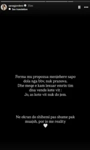 Ne ekran do shihemi pas shume pak muajsh, por jo me reality”, shkruan Sara.