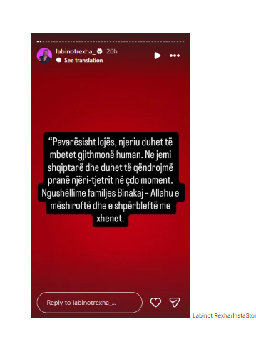 “Pavarësisht lojës, njeriu duhet të mbetet gjithmonë human. Ne jemi shqiptarë dhe duhet të qëndrojmë pranë njëri-tjetrit në çdo moment. Ngushëllime familjes Binakaj – Allahu e mëshiroftë dhe e shpërbleftë me xhenet”.