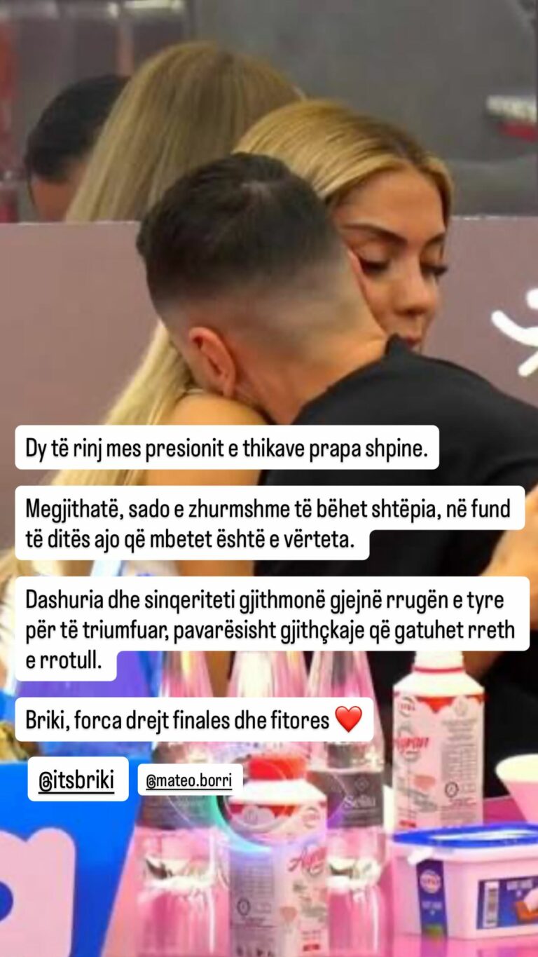 Në përfundim, ajo i ka drejtuar një mesazh të drejtpërdrejtë Brikenës: “Forca drejt finales dhe fitores”, duke i dhënë zemër që të vazhdojë rrugëtimin në garë.
