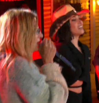Gjatë festës, ajo mori mikrofonin dhe filloi të interpretonte.