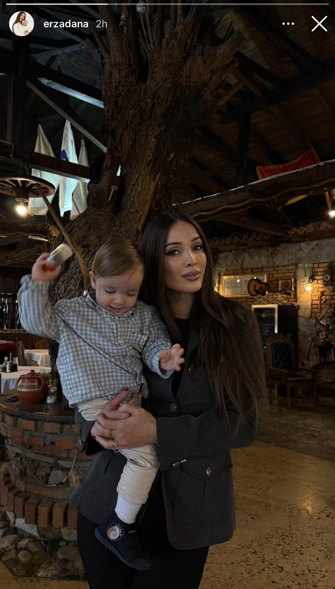 Në imazhin e shpërndarë, ajo shfaqet duke mbajtur në krahë të birin, shkruan “Kosovarja”.