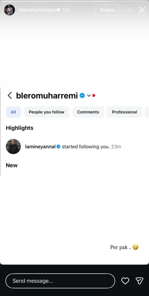 Në imazhin e publikuar, dukej sikur ylli i ri i FC Barcelona, Lamine Yamal, kishte filluar ta ndiqte këngëtarin në rrjetet sociale, duke krijuar menjëherë bujë mes fansave.