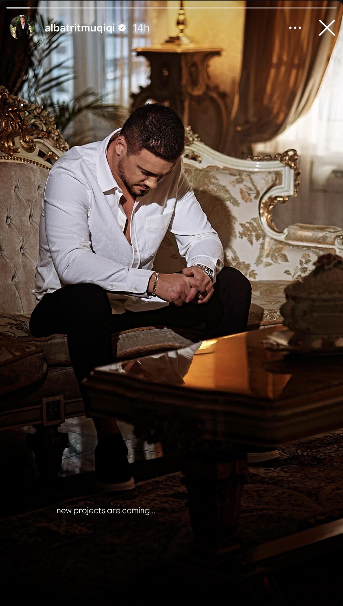 Së fundmi, këngëtari ka ndarë një fotografi nga skenat e klipit, ku shfaqet me një paraqitje më serioze, me kokën e ulur.
