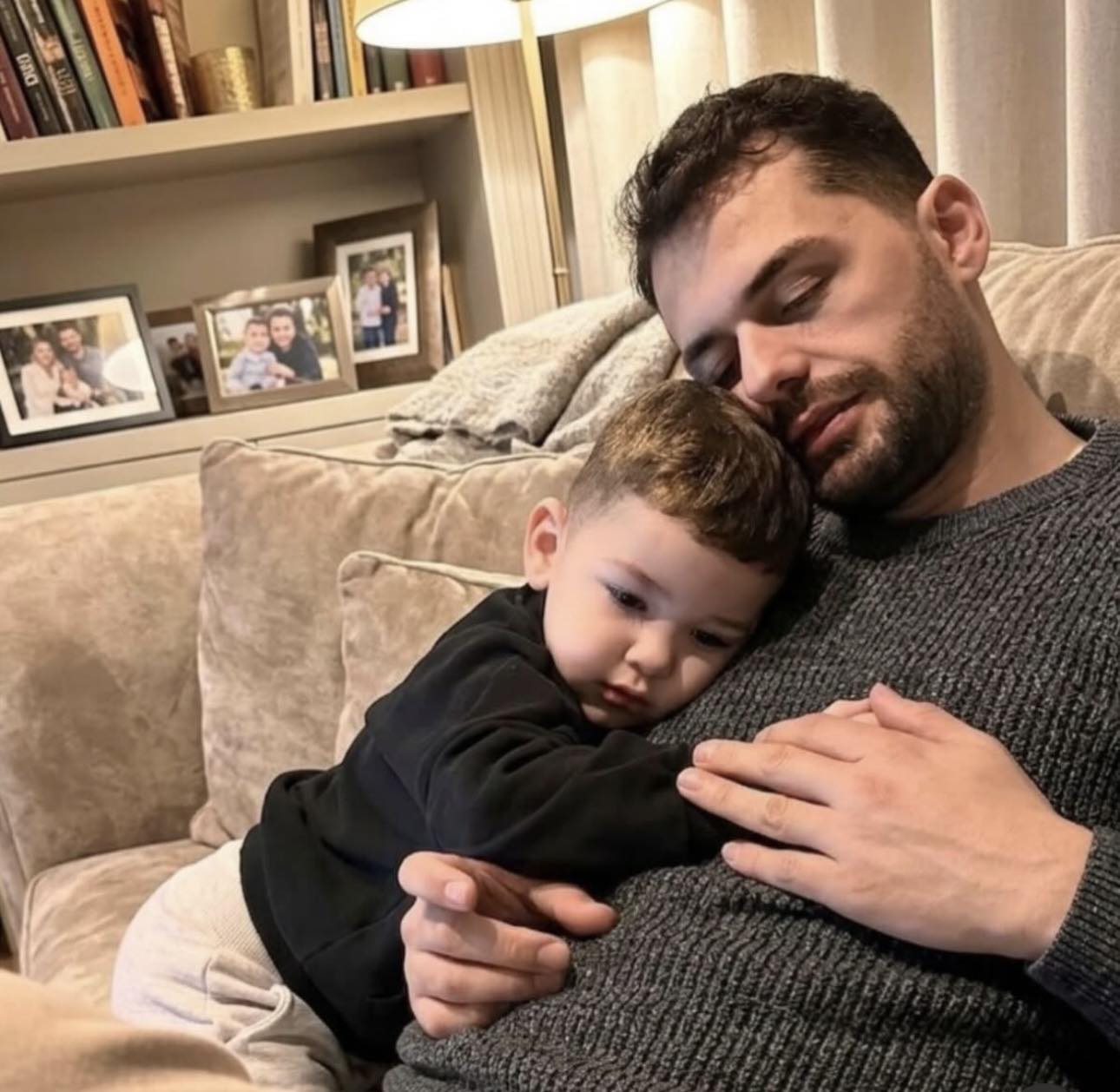 Imazhi paraqet një moment të afërt dhe familjar mes artistit dhe djalit të tij.